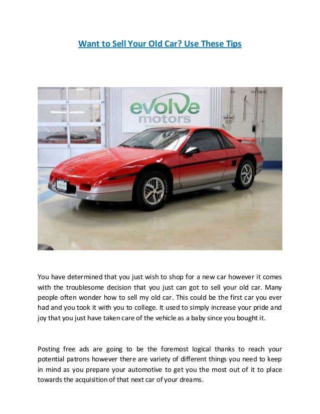 Want to Sell Your Old Car? Use These TipsYou have determined that you ...